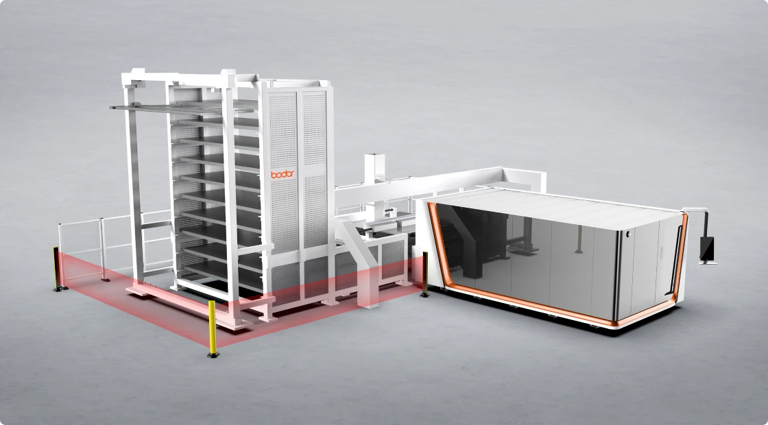 อุปกรณ์อัตโนมัติ iTransTower สามารถใช้งานร่วมกับเครื่องตัดหลายรุ่นของเราได้ และสามารถโหลด ขนถ่าย และจัดเก็บแผ่นวัสดุได้อัตโนมัติเต็มรูปแบบ.